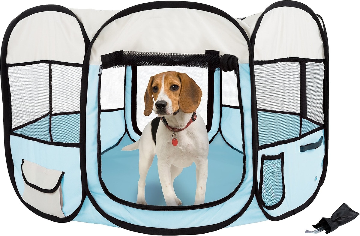 Pet Adobe Portable Pop-Up Dog & Cat Playpen, Light Blue, X-Large