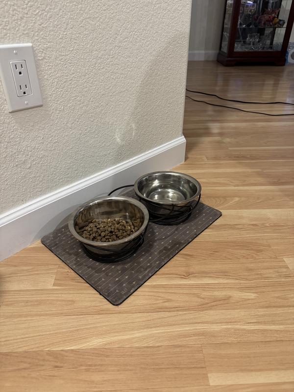 - Nonslip, decorative stand keeps bowls in place for no-mess feeding.