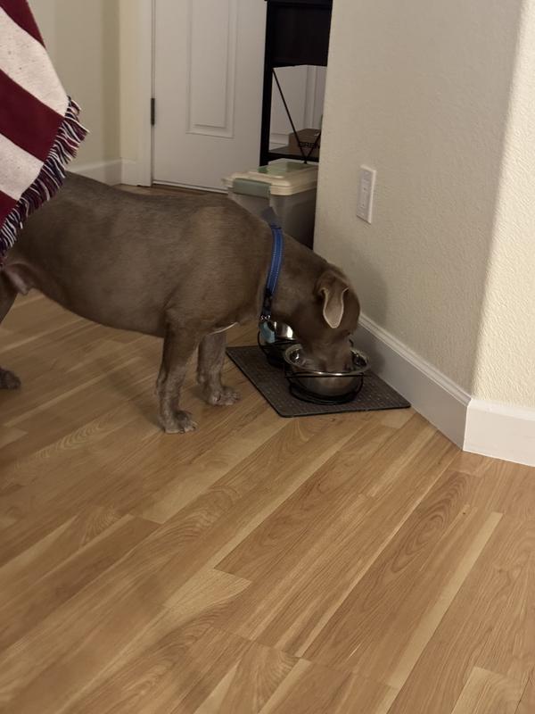 Pete really enjoys these elevated pet bowls! He’s a miniature dachshund so the height was very comfortable for him. He immediately took to these bowls, and he