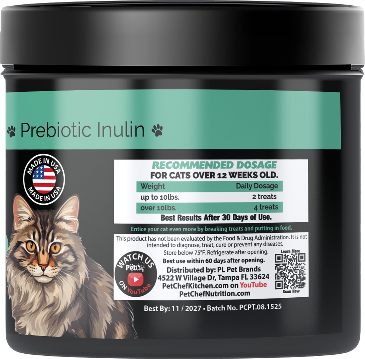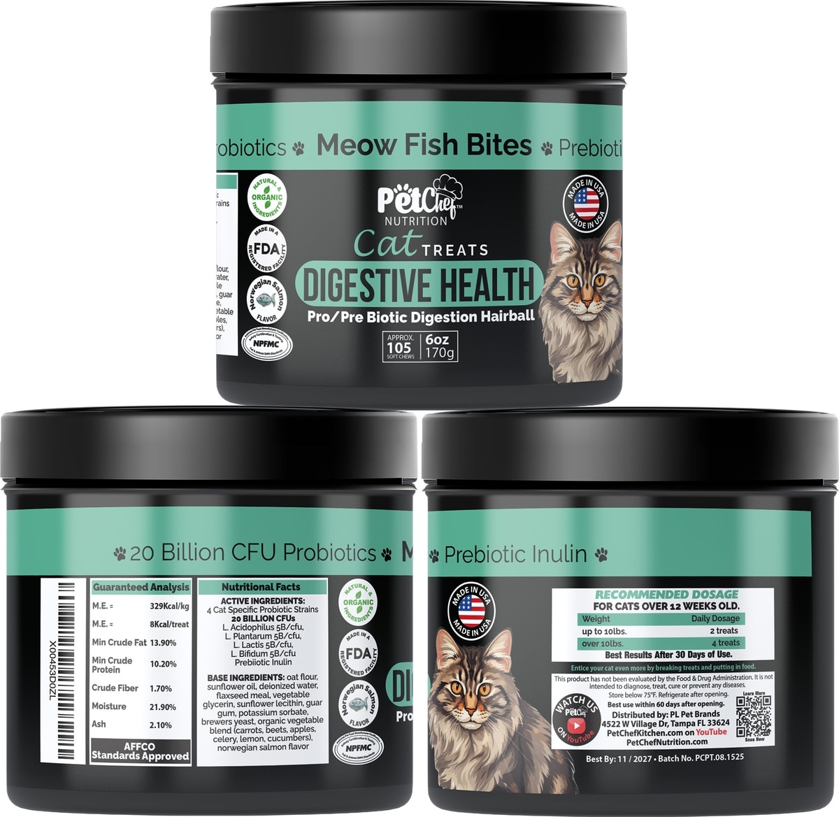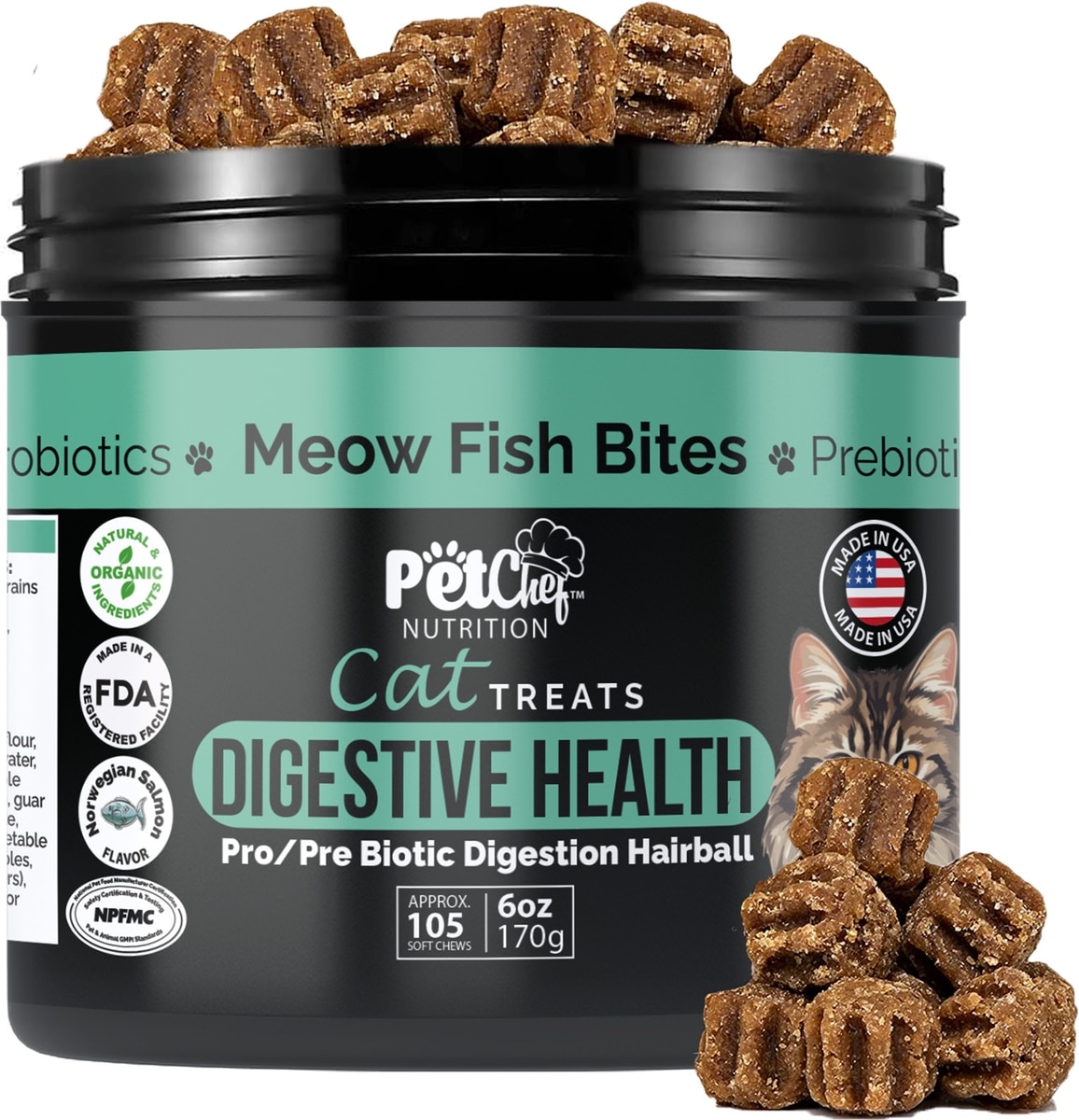 Pet Chef Probiotics Holistic Kidney & Bladder Salmon Flavored with Carnberry Flavored Soft Chew Urinary Support Supplement for Cats, 6-oz jar