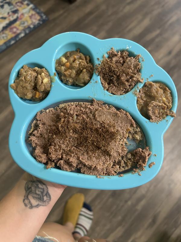We love this feeder! Our dog gets bored with meal time but enjoys having the multiple paw prints to eat from, if she leaves some in the bowl we then can remove the