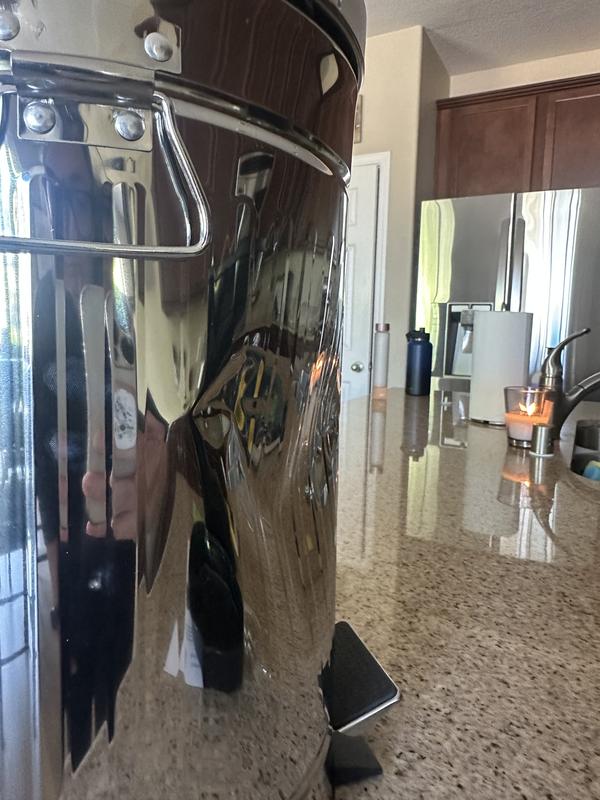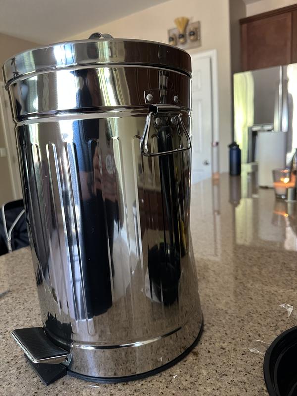 The lid fully closes over top of the bag and liner which keeps the smell inside. The replacing of bags when full keeps the smell from getting infused within the liner.