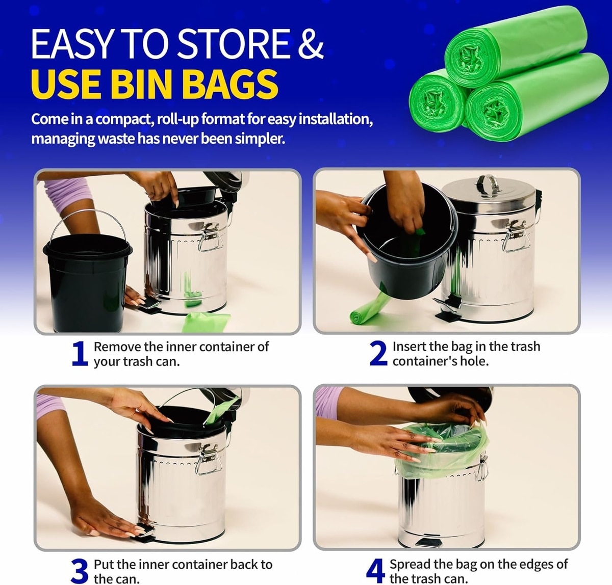 • These bags securely trap waste, reducing unpleasant smells and protecting your containers.