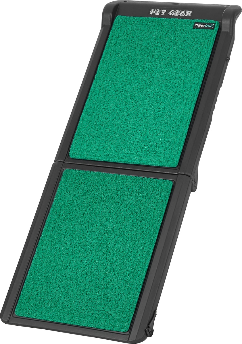 Designed to provide easy access to elevated surfaces, these ramps help reduce strain on your pet's joints and help prevent injuries. The removable supertraX mat is superior to other types of carpet treads, allowing your pet to get a better grip than ever before. Its innovative design gives your pet’s paws greater surface area contact with the ramp for better stability and ease of use.