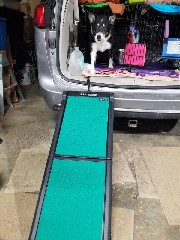 Pet Gear Travel Lite Bi-Fold Dog Car Ramp with SupertraX, Black/Green