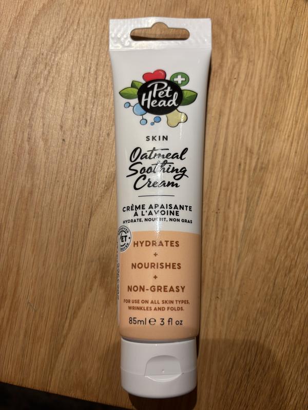 My senior pup has areas where his hair is thinner and has more skin exposed and dry. After bath times, his skin is extra dry and I was looking for something non greasy that would hydrate and soothe his skin. This is it! It has a very very subtle scent of oatmeal, not greasy, oily or sticky at all! Definitely a new item for every few days between baths too!