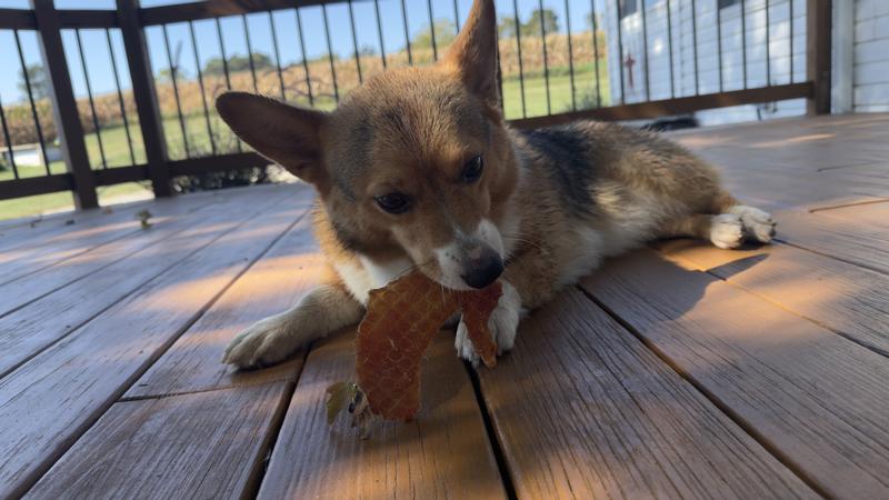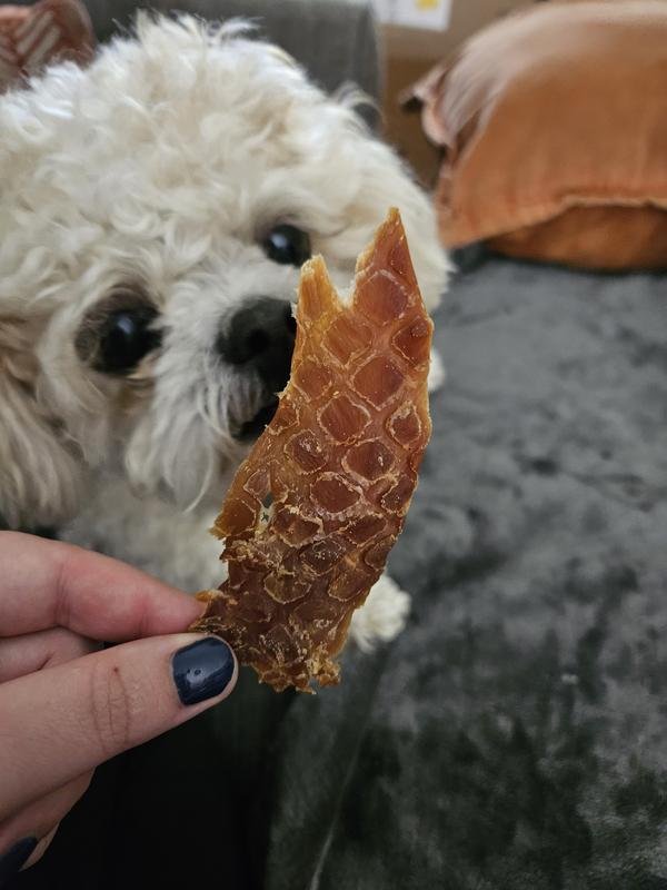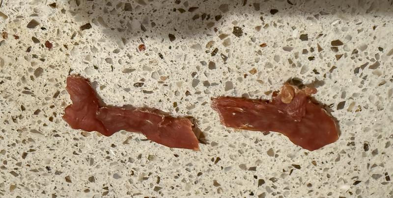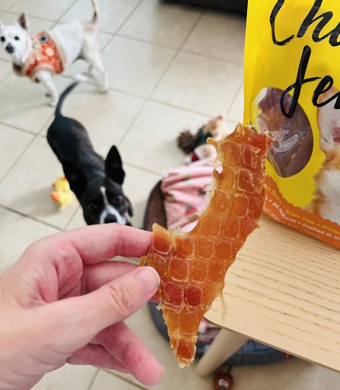 JoJo absolutely loved the Chicken Jerky snack. I opened it as soo as it arrived, he waits in anticipation of his daily piece. The product has great texture, and we love it. Will definitely buy more for him!
