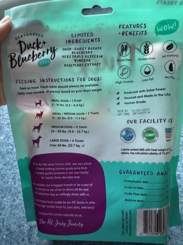 Pet Jerky Factory Duck & Blueberry Jerky Dog Treats, 12-oz bag