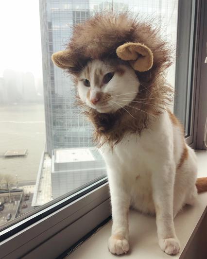 Doesn't look like photo. Hardly any "fur" on top. Does not look like lion's mane. Too big for cat's head. Very well constructed though and soft. Now using as cat toy. Cat likes attacking it.