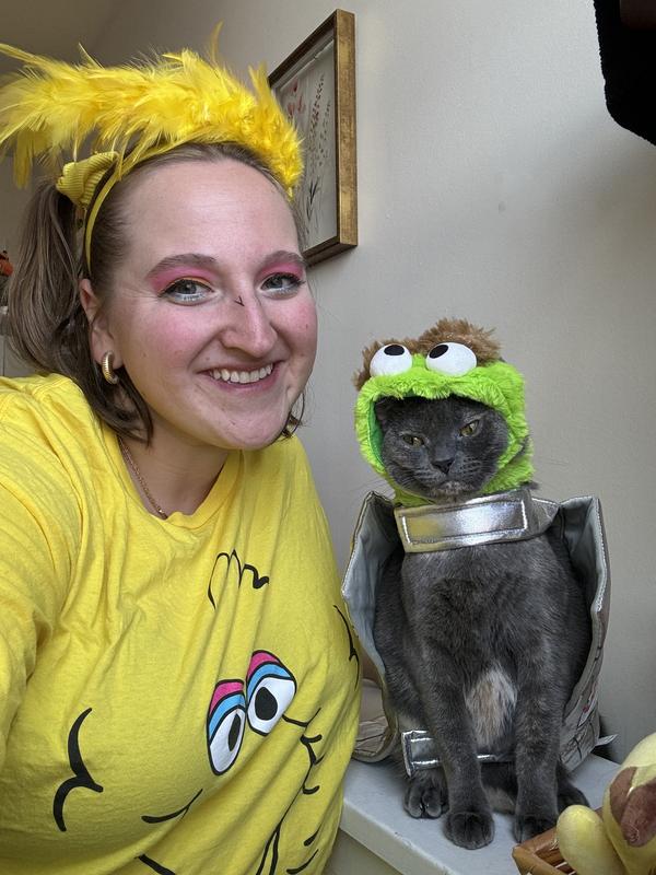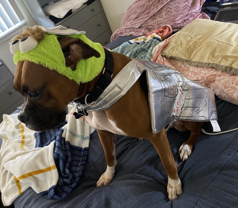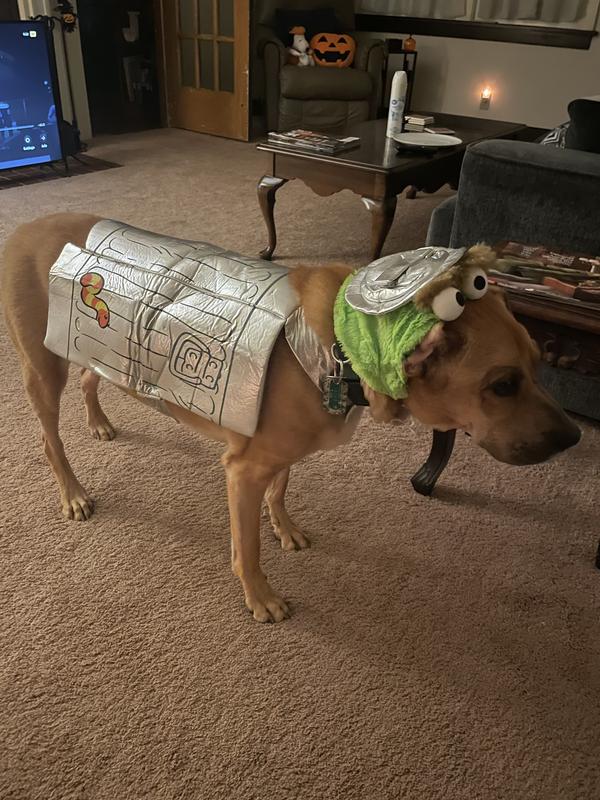 I was so glad I found these costumes for a Sesame Street themed dog event. My dog didn't mind the trash can vest at all. But neither of them like hats. lol When