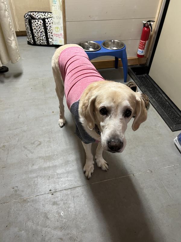 For a complete sizing chart, click on the 'Size' tab, next to the 'Instructions' tab, just under the product photos. To select the best size we recommend that you measure your dog's body length, neck, and chest. If the dog happens to be in between sizes, it's best to select the bigger size.
