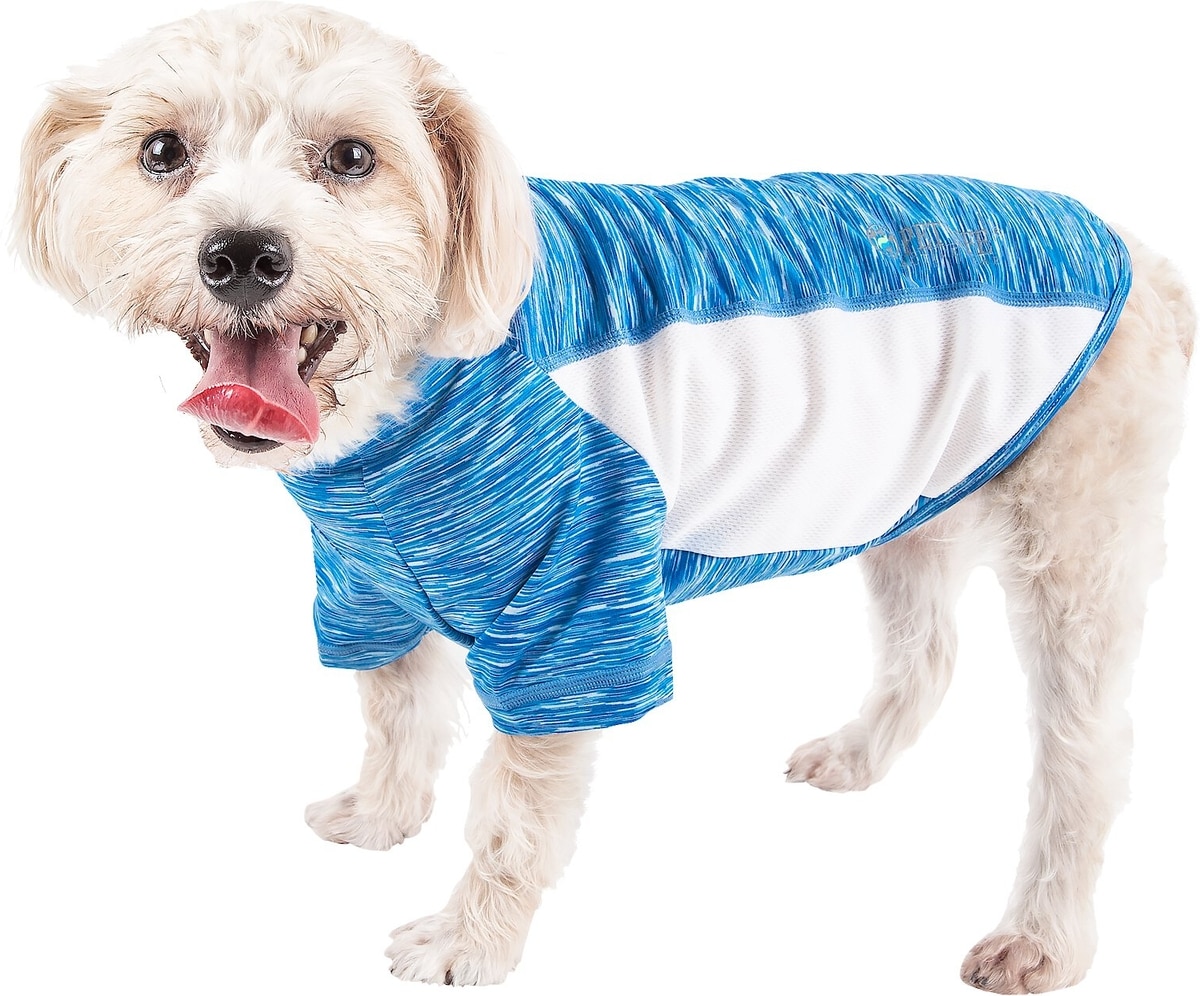 Pet Life Active Warf Speed Heathered Ultra-Stretch Sporty Performance Dog T-Shirt, Blue Heather/White, Medium