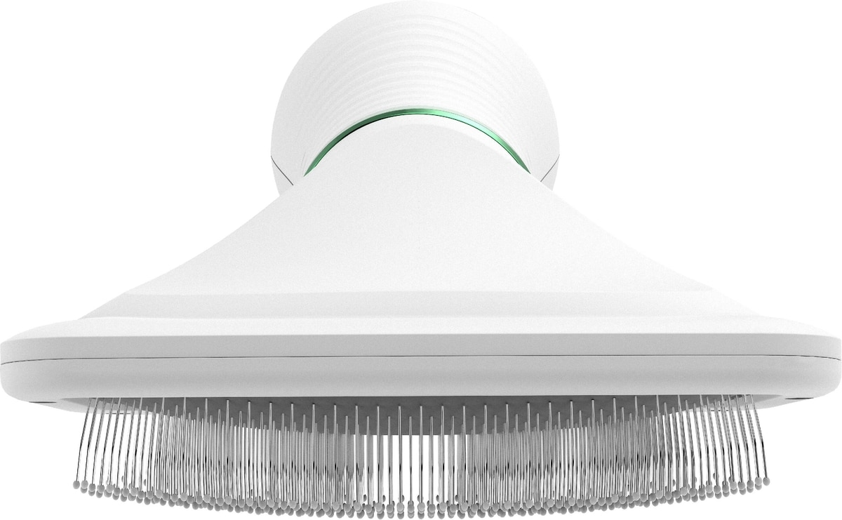 The air-cushioned pin brush provides added comfort during brushing and works on cats and dogs of all hair lengths.