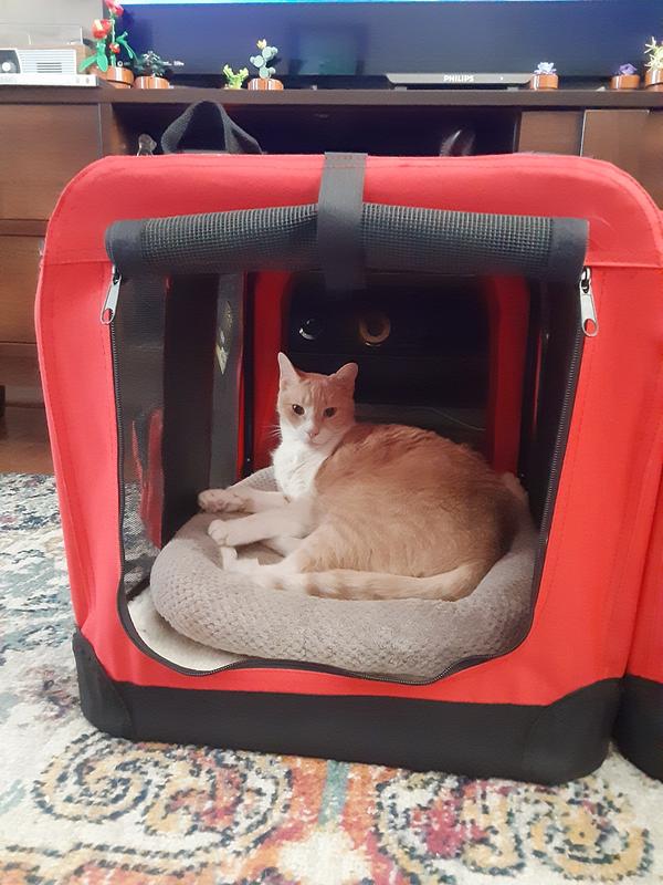 She had plenty of room to relax for our 12hr moving adventure. I think she liked the screens because she could see out and it wasn't like being shoved in a dark box. She was content to just lay there and watch out the window. After the move we left it in a corner and she still goes to lay in there. It's come in handy for a few tornado sheltering moment too.
