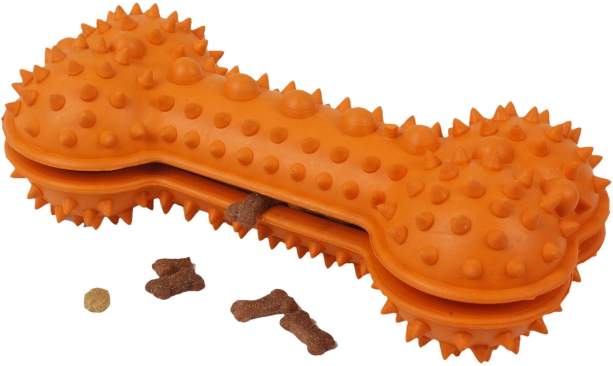 - Inner pocketed center designed to hold and slowly release dog treats or food.