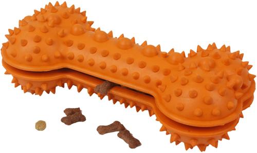 Pet Life 'Denta-Bone' TPR Treat Dispensing & Dental Cleaning Durable Dog Toy, Orange