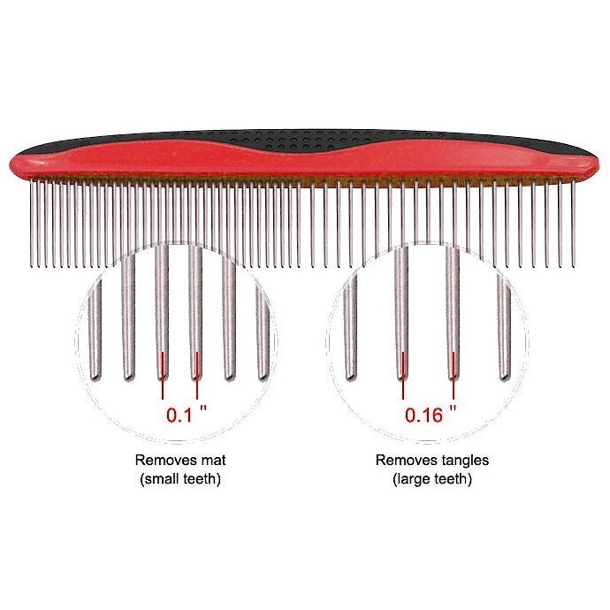 Pet Life Grip Ease Wide & Narrow Tooth Grooming Dog & Cat Comb, Red