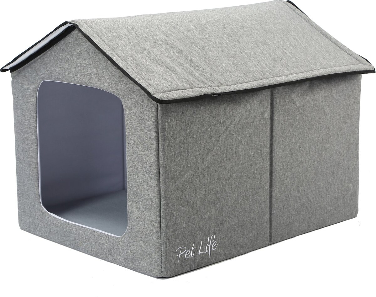 Pet Life Hush Puppy Electronic Heating & Cooling Smart Dog House, Grey, Small