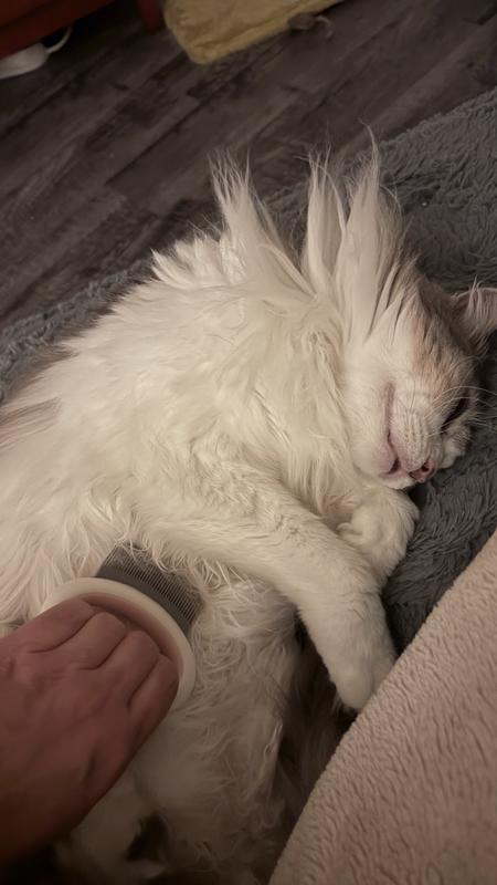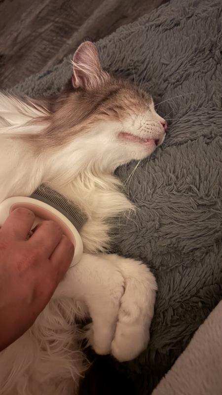 I have tried a lot of different brushes for my cat and he usually hated them all. I bought this one and did not have high expectations, but it had such good reviews. The moment I started brushing Fenn with it he started purring. He flopt over and started making air biscuits. This comb easily removes his loose fur, gets rid of knots and mats in his floofy fur and he actually enjoys it. I’ve used it a few times now and he still seems to enjoy it. He is shedding way less and his coat has never looked and felt better. Total game changer, I highly recommend it and wish I had gotten it sooner.