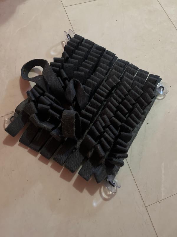 My dog loves to hunt for part of his meal in this mat, but the suction cups don't stick. They didn't stick on my last tile floor (I think it was too textured), and I moved and they don't stick to my new completely flat tile floor. I'll have to rig up something heavy to attach the mat to so he can snuffle without chasing the mat all over the room.