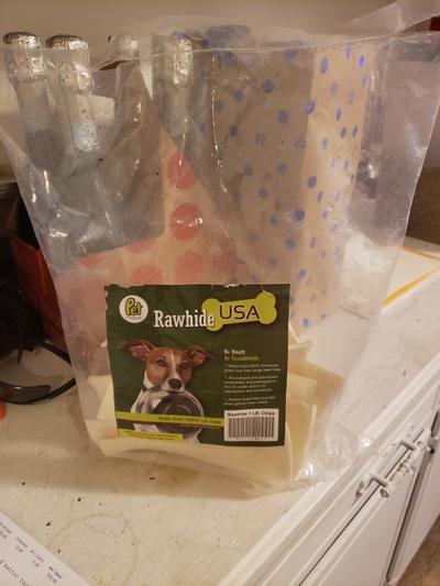 These Rawhide Chips have no bleach or formaldehyde and are made of 100% American grass-fed, free range beef hide.