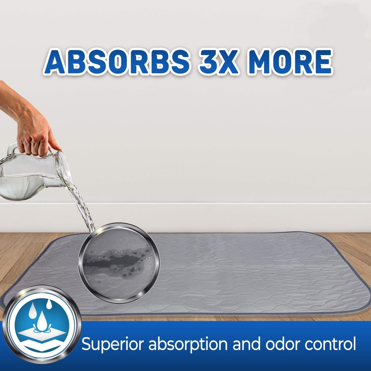 I rescue dogs and can say that I have tried many different absorbent pads and have found these were among my favorite and I use them for all kinds of things now.....under water dishes, and when bathing --- I put them on the floor because the dogs will usually lay on the floor sopping wet as I'm simultaneously drying them on the side they are not laying on and these mats absorb a majority of the moisture instead of going through a gazillion towels. I have read the other reviews here and have to say that I'm somewhat shocked that they didn't find them absorbant enough and I have a suspicion that they might not have laundered them properly --- likely on accident. You see, with absorbent pads like this, you CAN NOT dry them in the dryer without risk of ruining their water-repelling side. If the coating breaks down, things like this don't work as intended. If a mega soak of water from bathing a dog doesn't break the barrier I'm not sure what would other than leaving the pads soaking for too long. I guess that could be another factor. Second to these I have a set that have a heavy plastic barrier bottom with a cotton like top....they also work great but they take FOREVER to air dry because of the plastic bottom -- hence making these my favorite.