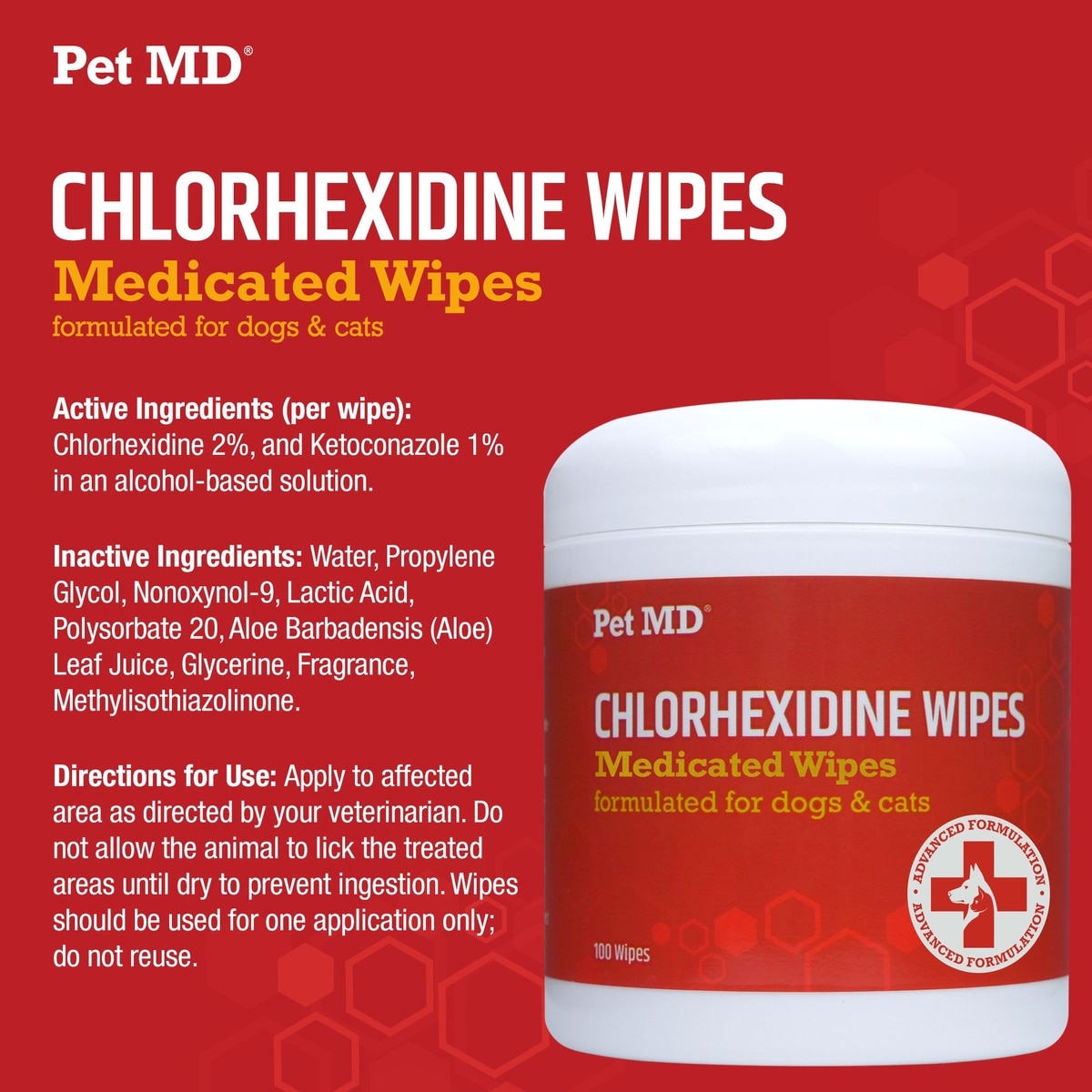 Pet MD Chlorhexidine Dog & Cat Wipes, 100 Count