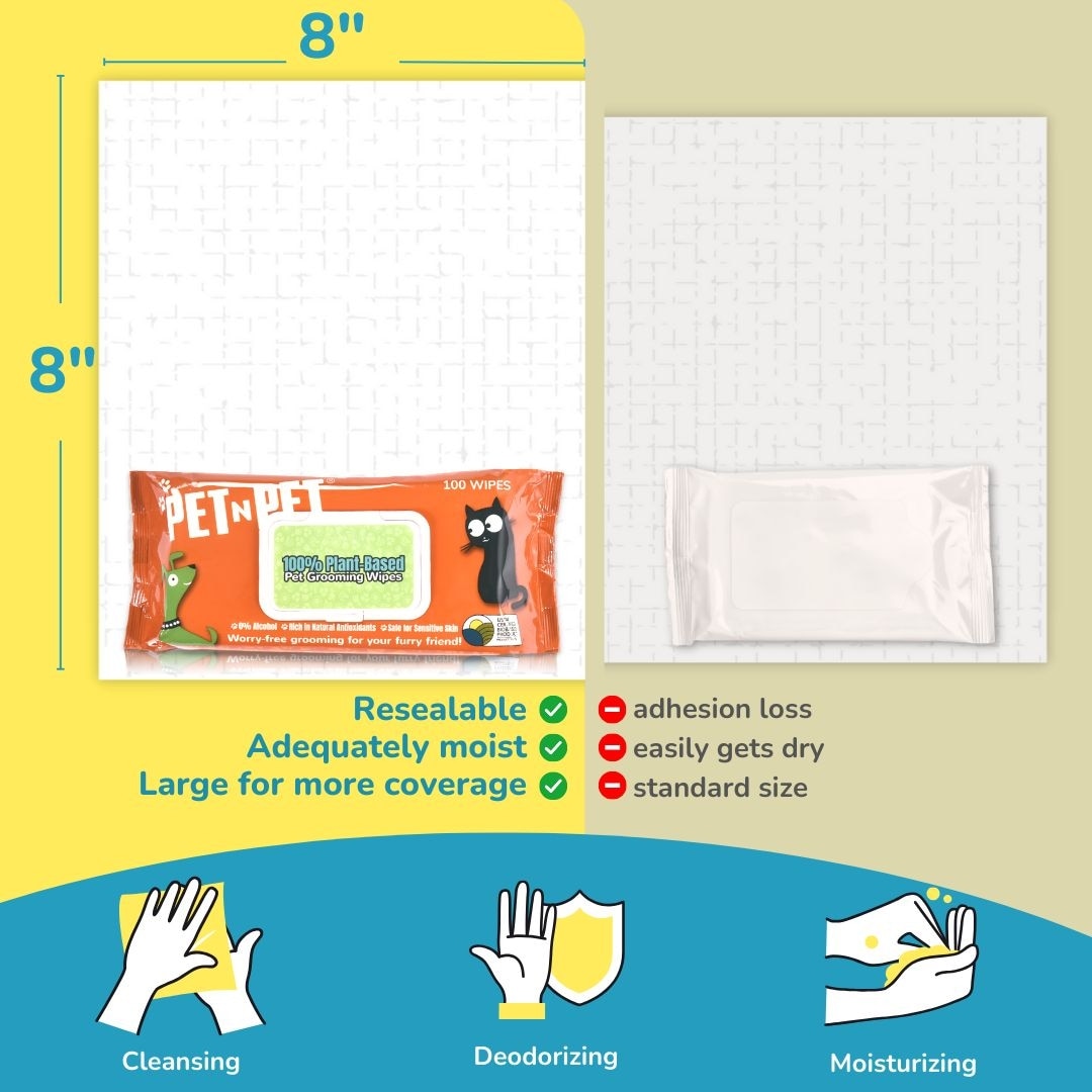 PET N PET Unscented Dog & Cat Grooming Wipes, 100 count