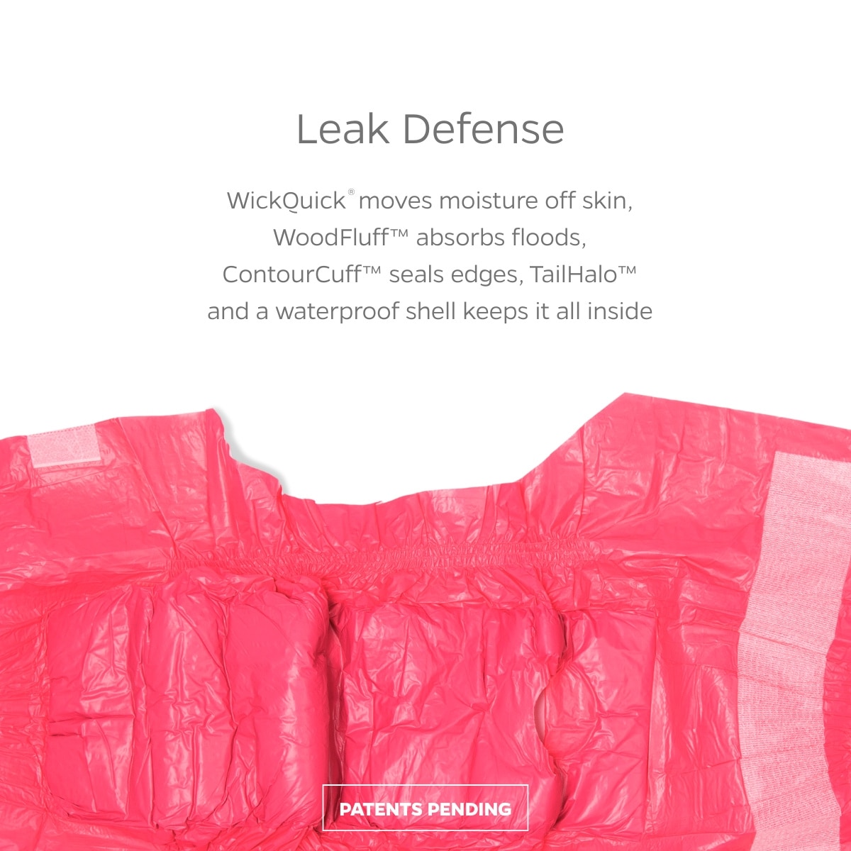 WickQuick helps keep skin dry while a waterproof exterior locks leaks in. TailHalo guards the tail area, & ContourCuff hugs legs for a gap-resistant fit. DiPees, disposable male & female dog diapers that help you care calmly & keep comfort close