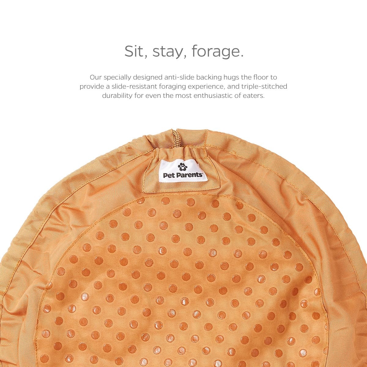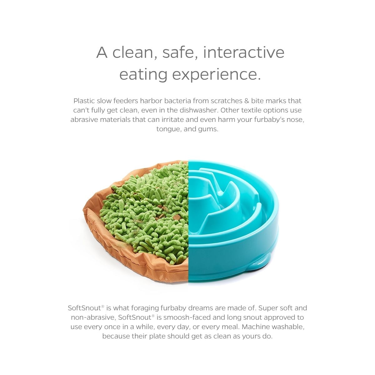 Pet Parents’ proprietary SoftSnout material is super soft and non-abrasive on delicate noses, tongues and gums. A great alternative to plastic and other harsh materials, it is safe for your pet to use every day. A durable and breathable outer shell helps Forager retain its shape, while anti-slide backing helps keep Forager in place. All materials are easily washable so you can get out all the food residue for safety, too.