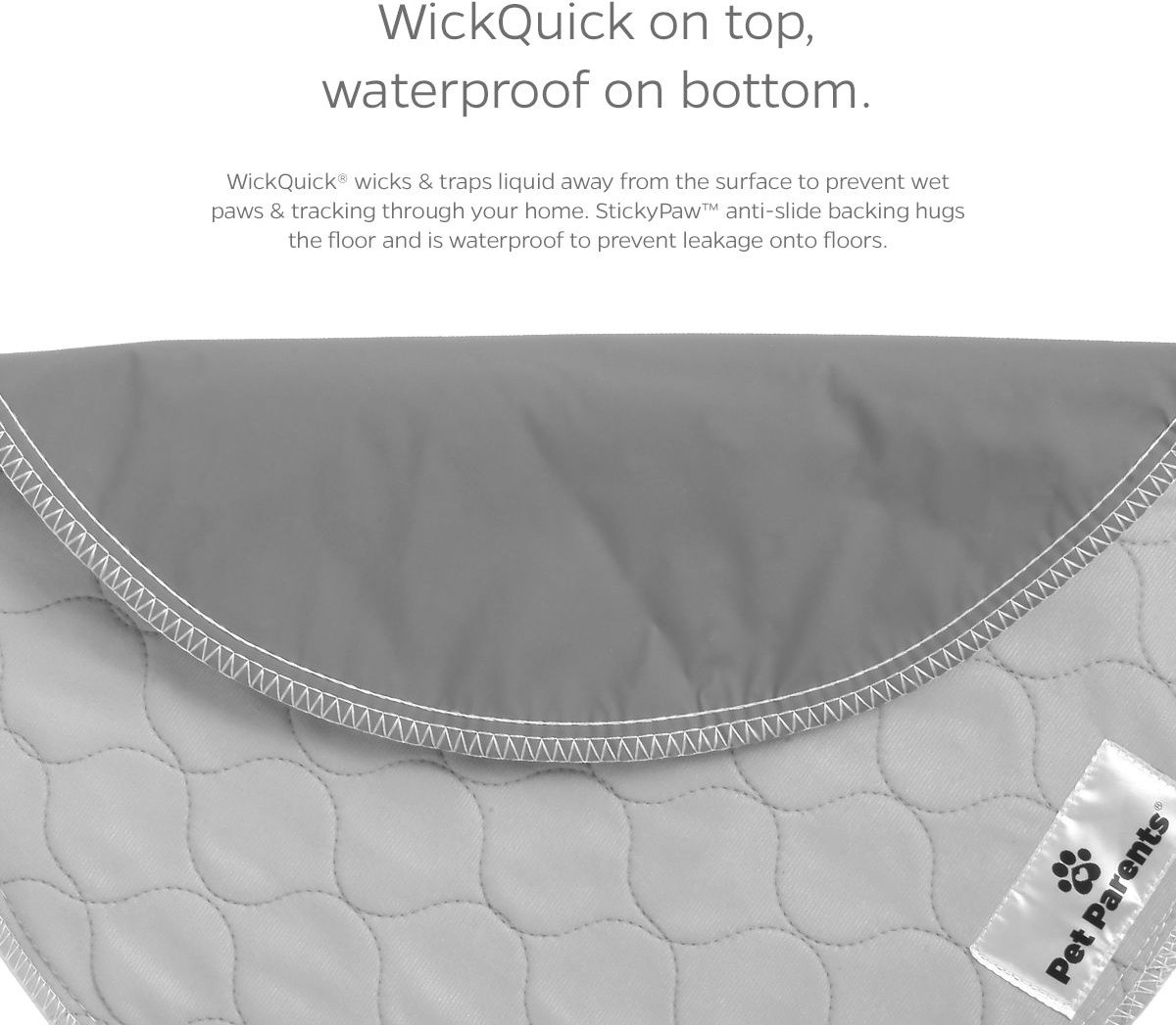 Leave odor, leaks and tracking behind with Pawtect Pads. These pee pads are a great way to lock in liquid and prevent tracking across your home. Pawtect Pads use WickQuick, a proprietary fabric blend that wicks liquid away from the surface and holds more liquid per square inch than disposable pads or other pee pad options. Special StickyPaw backing keeps the pads in place and ensures no liquid seeps through. Together, the WickQuick and Sticky Paw materials trap smells for odor control, too!