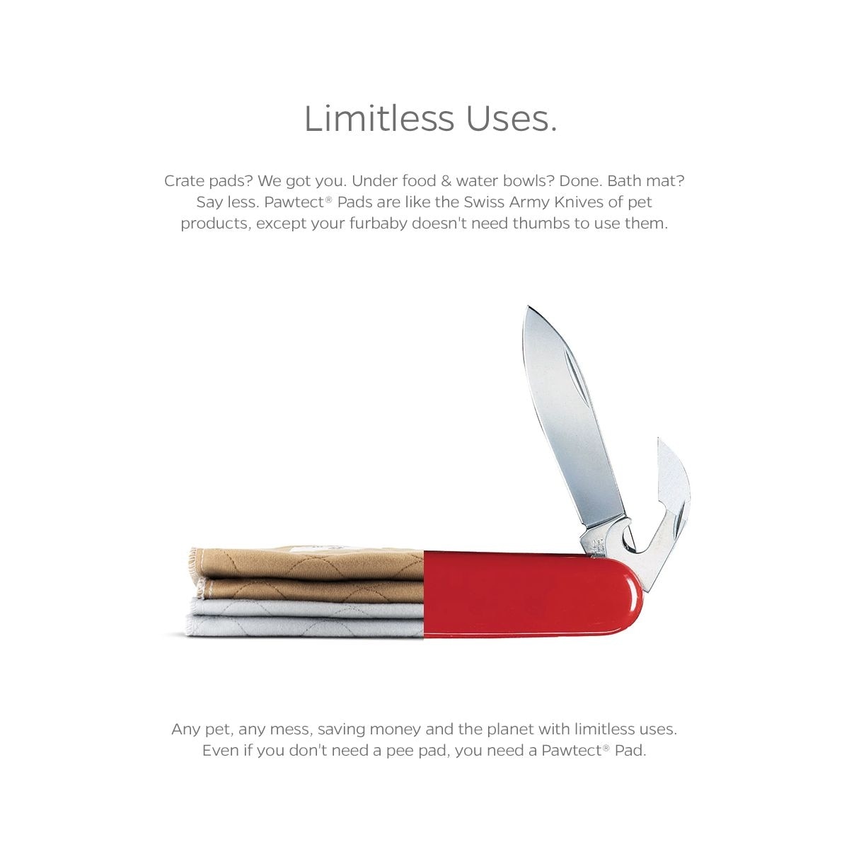 Leave odor, leaks and tracking behind with Pawtect Pads. These pee pads are a great way to lock in liquid and prevent tracking across your home. Pawtect Pads use WickQuick, a proprietary fabric blend that wicks liquid away from the surface and holds more liquid per square inch than disposable pads or other pee pad options. Special StickyPaw backing keeps the pads in place and ensures no liquid seeps through. Together, the WickQuick and Sticky Paw materials trap smells for odor control, too!