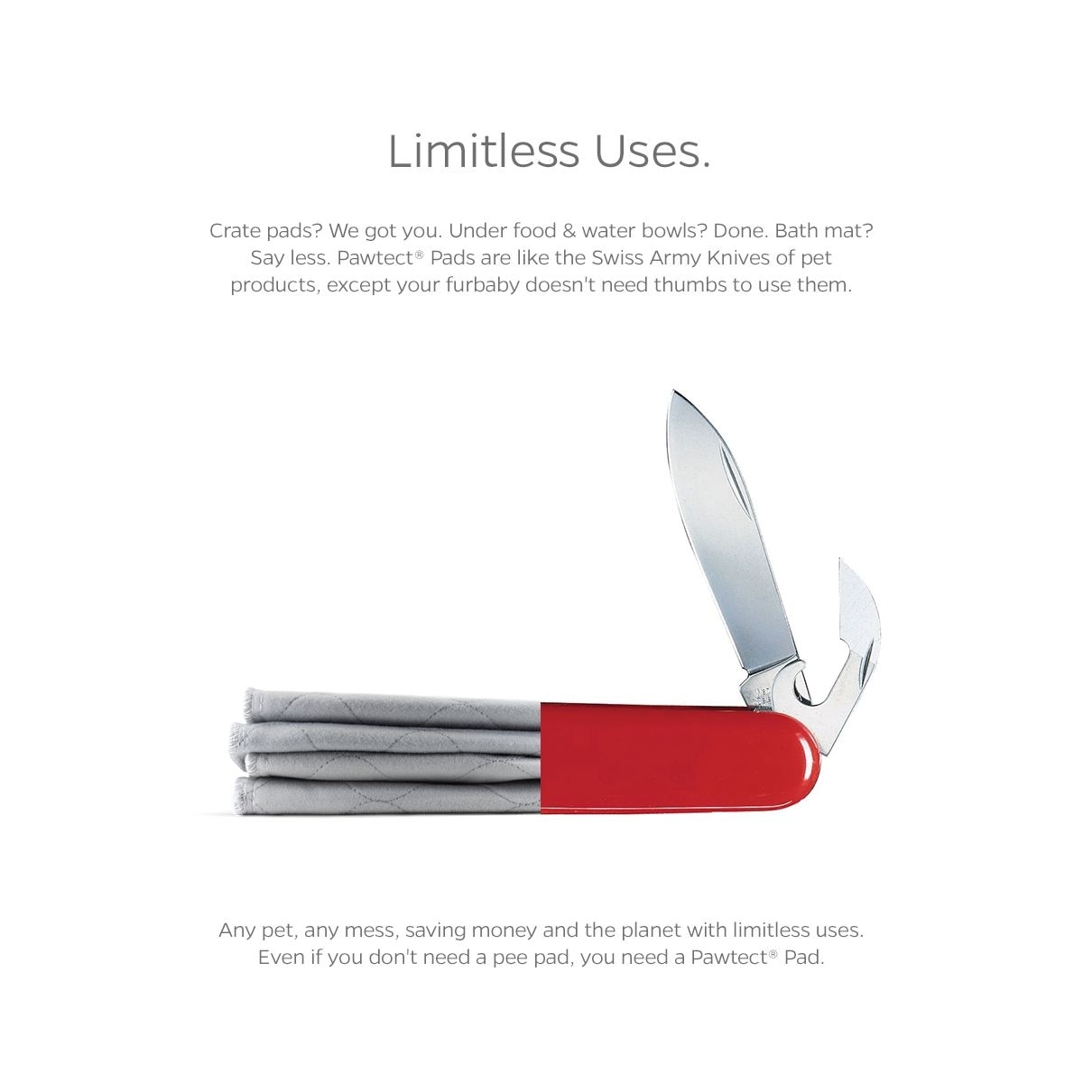 Leave odor, leaks and tracking behind with Pawtect Pads. These pee pads are a great way to lock in liquid and prevent tracking across your home. Pawtect Pads use WickQuick, a proprietary fabric blend that wicks liquid away from the surface and holds more liquid per square inch than disposable pads or other pee pad options. Special StickyPaw backing keeps the pads in place and ensures no liquid seeps through. Together, the WickQuick and Sticky Paw materials trap smells for odor control, too!