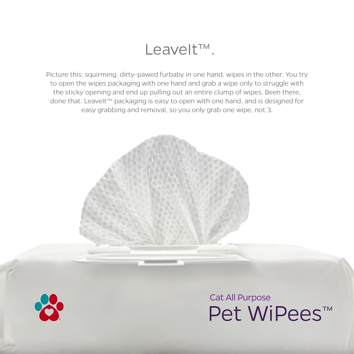 When you need one, but three come out. Not here. Innovative packaging that allows easy access & removal of Pet WiPees and prevents clumping, so you only grab one wipe at a time. Our resealable plastic lid keeps your Pet WiPees fresh, & allows effortless one-handed removal.