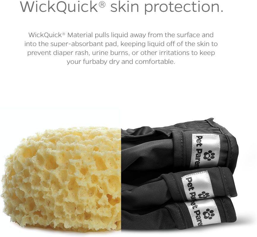 WickQuick material draws liquid into the diapers to help prevent diaper rash, urine burn and irritation from soiled bands. Fur-safe hook and loop closures won’t pull or catch, while specially placed elastic allows for easy movement and comfy naps. They all combine to provide a snug, leak-proof fit.