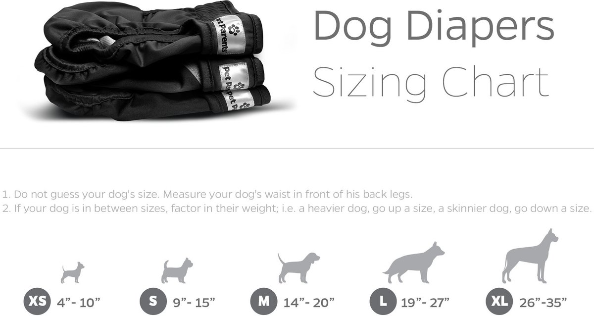 Pet Parents Washable Male & Female Dog Diapers + Extendrs, Black, X-Small: 4 to 10-in waist, 3 count