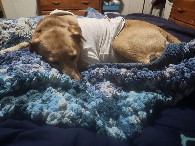 This fits my 42 lb Boxer mix well. He enjoys wearing it and now that we have lots of snow and cold outside, I put this on him when he is inside. I use a warmer puffer
