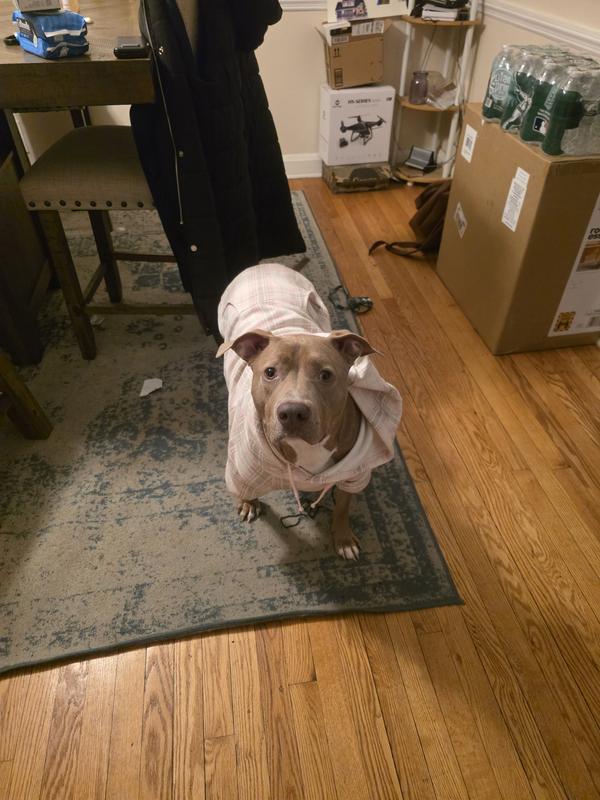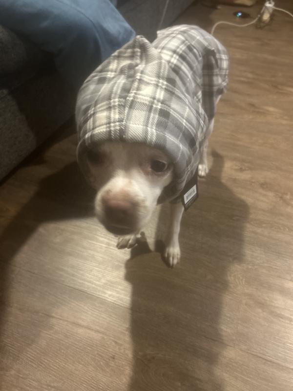I was really excited to receive this cute flannel sweater to end up disappointed. My boy usually wears a small but this sweater runs big so his two front legs slip out and he trips.