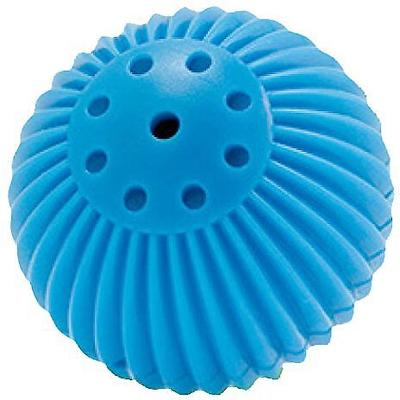 This ball is made of rigid, sharp plastic. I did not feel it was safe for my dog to play with - if she bite into this and it cracked, it would cut her mouth severely!!