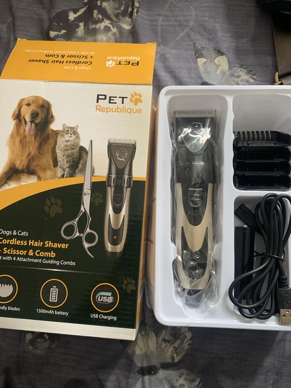 Pet Republique Hair Clipper Additional Scissors & Comb Rechargeable & Quite with Guide Combs for Dogs & Cats