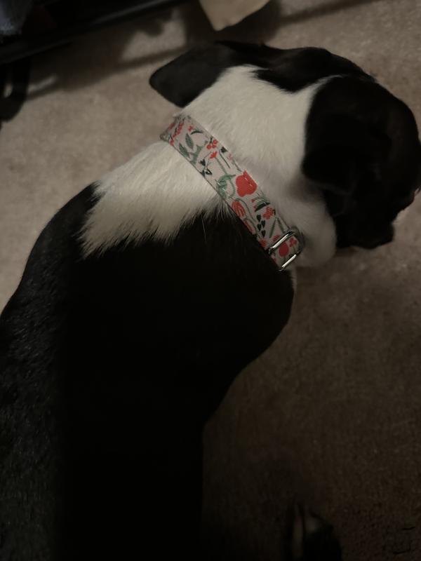 I got this for my pup and it is perfect. I was looking for a fun print and found this cute floral. The quality is great and it adjusts well. I am considering buying another print from this brand!