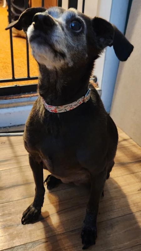 Great collar!! My dog Birdie looks so super cute in the floral collar! Great quality and craftsmanship! Would definitely recommend to friends and family!