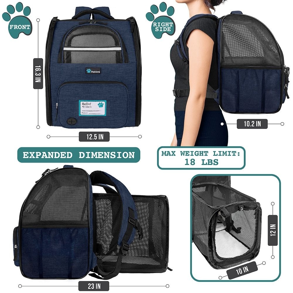 PetAmi Airline Approved Backpack Dog & Cat Carrier, Navy