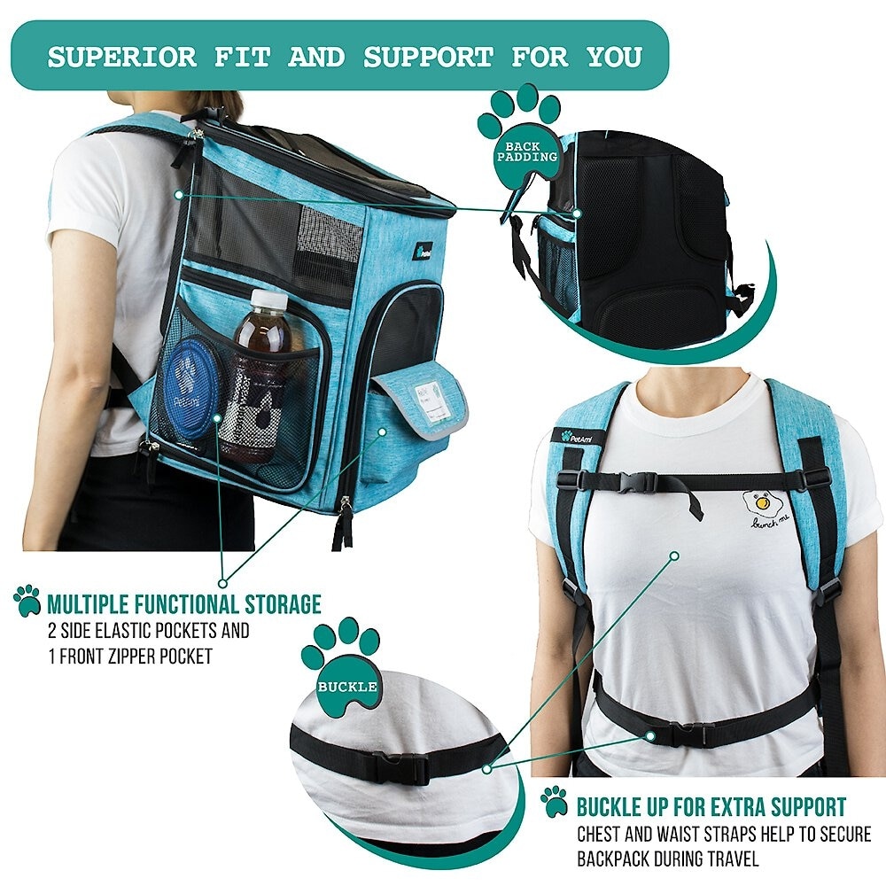 PetAmi Airline Approved Backpack Dog & Cat Carrier, Turquoise