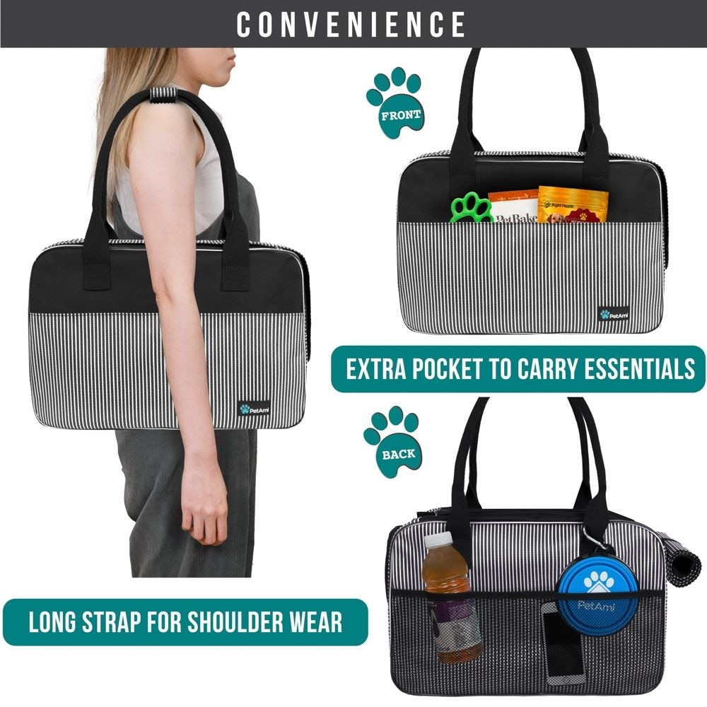 PetAmi Airline Approved Bag Dog & Cat Carrier, Stripe Black