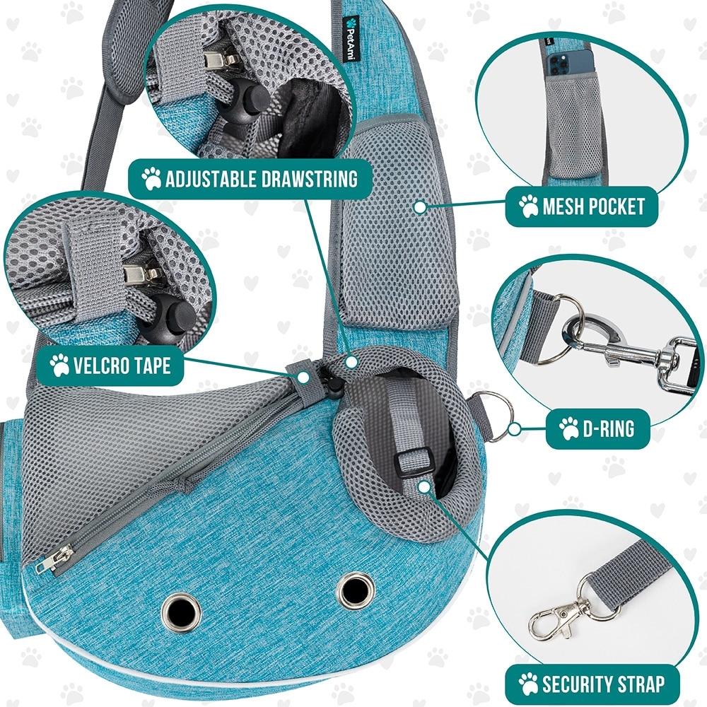 PetAmi Airline Approved Sling Dog & Cat Carrier, Teal Blue, Medium