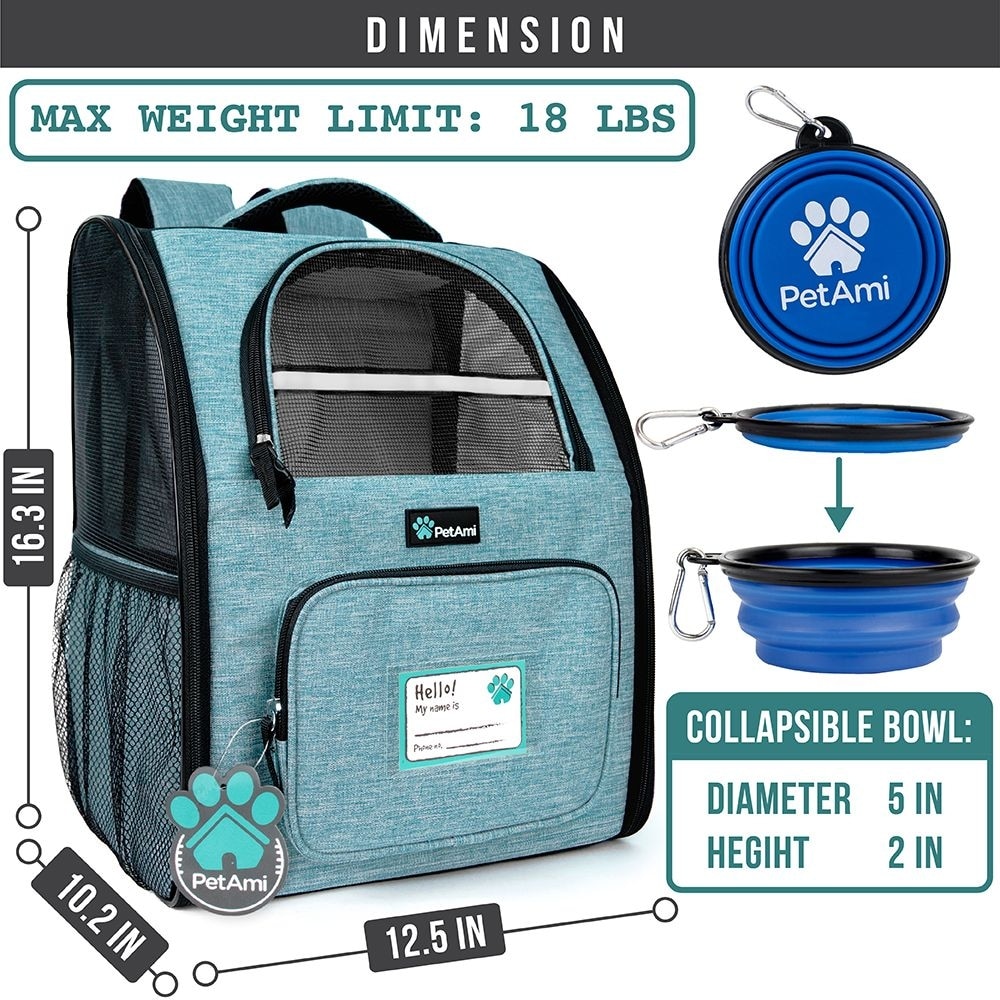 PetAmi Deluxe Backpack Dog & Cat Carrier, Sea Blue