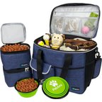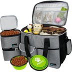 This pet travel bag is a really great deal for the money! Its the perfect size and lots of compartments and storage to carry all of your dog's needs - leashes, toys, food, Etc The collapsible bowls it cones with are the perfect for traveling! Highly recommend!