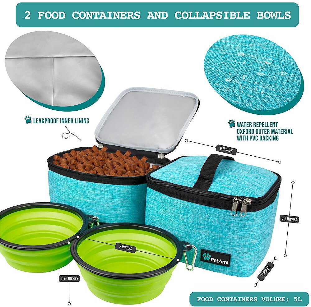 - Comes with 2 food container bags and 2 collapsible bowls.