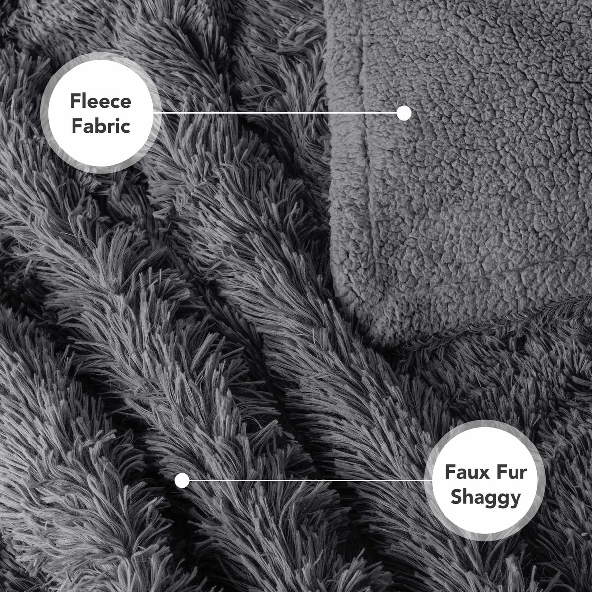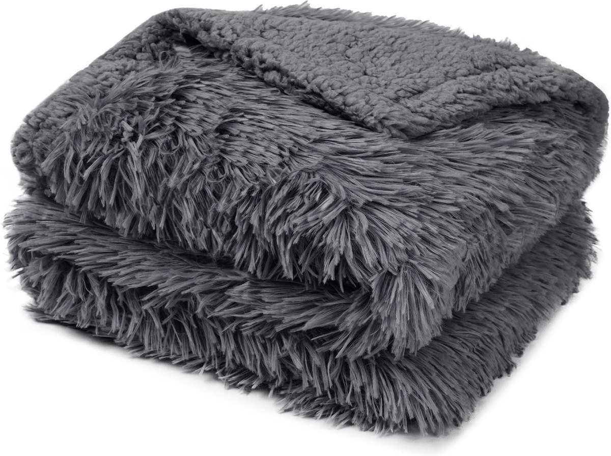PetAmi Furry Faux Fur Waterproof Cat & Dog Blanket, Grey, Medium